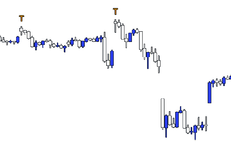 Points out clean breaks through established price zones.